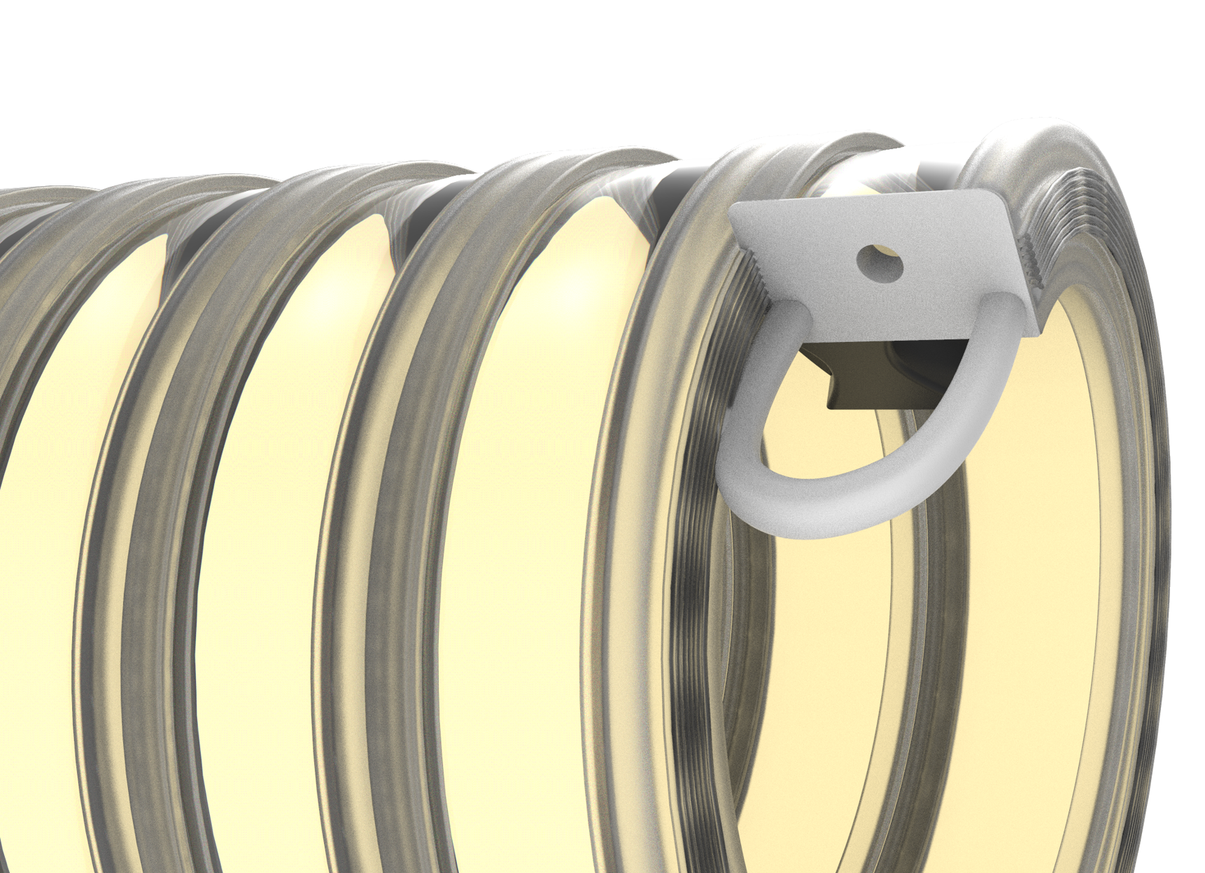 This piece keeps everything within the extrusion secure as well as giving it the ability to be hung in any fashion. My iterations began simple and need to be attached to the product with some type of fastener. As I progresses the hook became self sufficient in that it simply snaps into the end. This not only allows for a more simplistic production but the ability to remove and access inner electronics if necessary. The hole is present on one of the sides to allow for power cord.